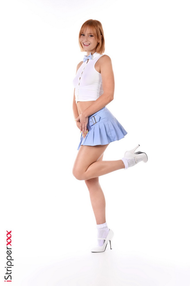 The red-haired model will take off her skirt and you will appreciate her charms …